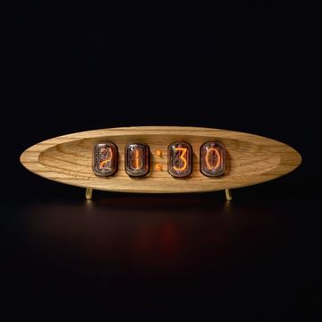 С 2018 года мы делаем ламповые (газоразрядные) часы в духе современного дизайна: сдержанные пропорции, продуманная геометрия и «чистые» линии без лишнего шума. Корпуса собираем из натуральных пород — чаще всего из дуба и ореха. Каждая грань выверена так, чтобы в течение дня менялась игра света и тени, и часы выглядели по‑разному утром, днём и вечером. Некоторые наши клиенты сравнивают ощущения от часов с ощущениями от камина — чем-то уютным, теплым и домашним.